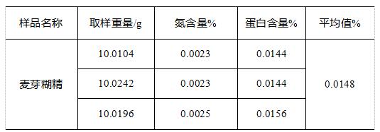 表3 麥芽糊精中蛋白質測試結果