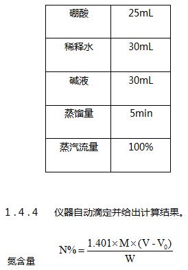 待消化管內溶液冷卻至室溫后,將消化管放置于定氮儀上,開始蒸餾滴定。定氮儀設置程序如下: