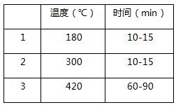 利用石墨消解爐進行消解,將消化管放在石墨爐上,蓋上排氣罩,連接廢氣吸收系統,設定消解溫度參數如下表: