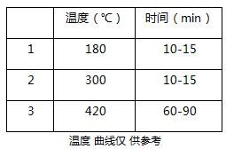 利用石墨消解爐進行消解,將消化管放在石墨爐上,蓋上排氣罩,連接廢氣吸收系統,設定消解溫度參數如下表: