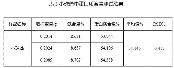 表3小球藻中蛋白質含量測試結果