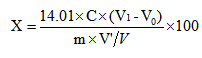 式中: X—試樣中揮發性鹽基氮的含量,單位為毫克每百克(mg/100g);
