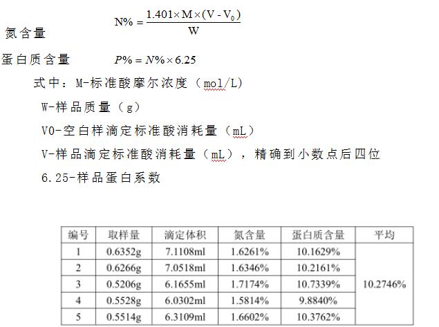 肉松餅中的有機態氮在濃硫酸和催化劑的共同作用下,轉化為氨態氮。加堿蒸餾后,用硼酸吸收后,再以鹽酸或硫酸標準滴定液進行滴定。