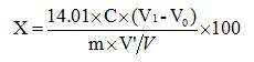 式中:X—試樣中揮發性鹽基氮的含量,單位為毫克每百克(mg/100g;
