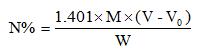V-樣品滴定標準酸消耗量(mL),精確到小數點后四位