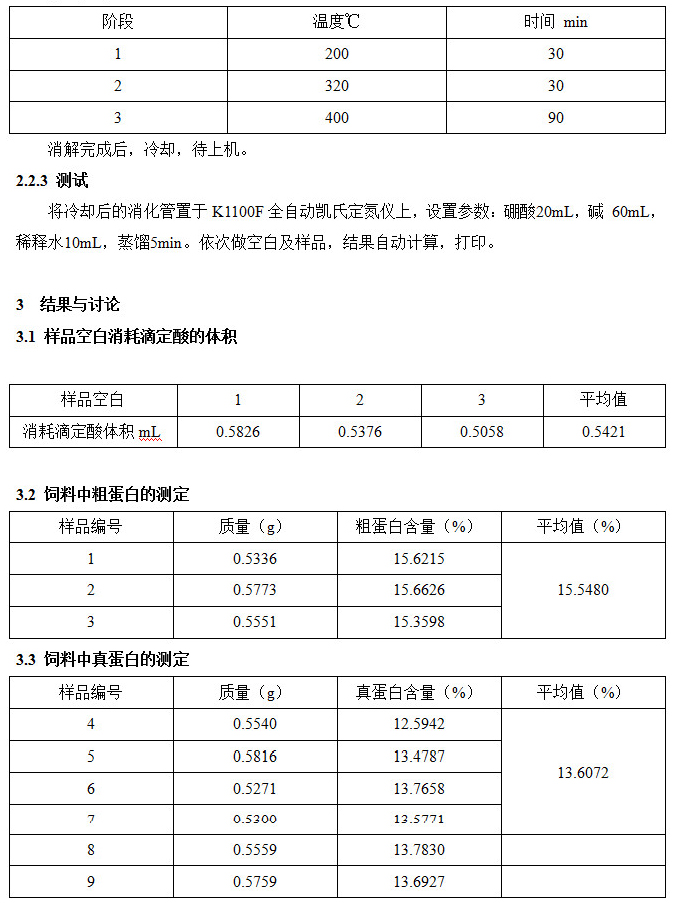 凱氏定氮法測定飼料中真蛋白的含量