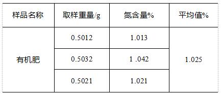 表2有機肥中氮含量測試結果