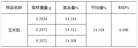 表3玉米朊中氮含量測試結果