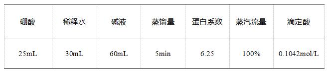 定氮儀參數設置如表。