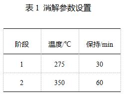 依次往消化管中加入3mL鹽酸,全部加完后計時10min并緩慢搖晃消化管,并將石墨消解爐提前升溫至300℃。待計時結束將消化管放到已升溫至300℃的石墨消解爐上,待其沸騰后計時1min后取下冷卻。待消化管冷卻后,沿消化管壁加入10mL硫酸。