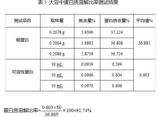 測試結果顯示本次測試的大豆的蛋白質溶解比率為81.74%,大于《GB/T 31785-2015 大豆儲存品質判定規則》中規定的75%,屬宜存大豆。