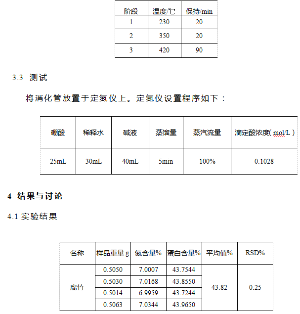 凱氏定氮儀測定腐竹中蛋白質的含量