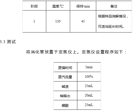 鹽酸(分析純),20g/L硼酸溶液,溴甲酚綠-甲基紅混合指示劑,40%氫氧化鈉,0.02mol/L硫酸標準滴定液。