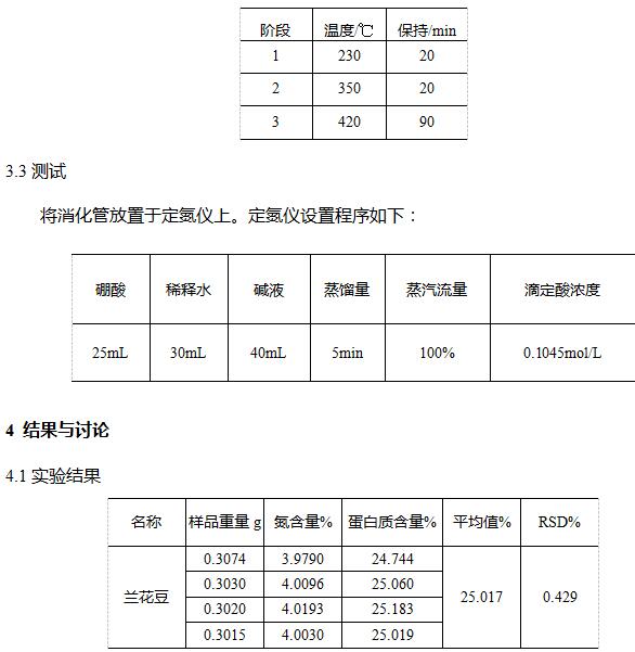 凱氏定氮儀測定蘭花豆中粗蛋白的含量