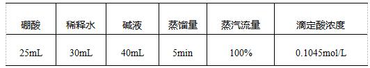 硫酸(分析純),20g/L硼酸溶液,溴甲酚綠-甲基紅混合指示劑,40%氫氧化鈉,混合催化劑壓片(3gK2SO4、0.2gCuSO4),0.1mol/L硫酸標準滴定液。