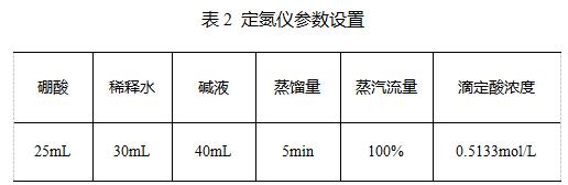 硫酸(分析純),20g/L硼酸溶液,溴甲酚綠-甲基紅混合指示劑,40%氫氧化鈉,混合催化劑(3gK2SO4、0.2gCuSO4),0.5mol/L硫酸標準滴定液。