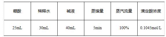 硫酸,20g/L硼酸溶液,溴甲酚綠-甲基紅混合指示劑,40%氫氧化鈉,混合催化劑壓片(3gK2SO4、0.2gCuSO4),0.1mol/L硫酸標準滴定液。