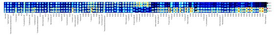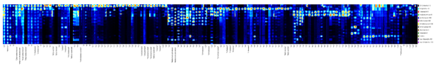 1) 圖中每一行為一種樣品,由該樣品所含的全部揮發性有機物信號峰組成;