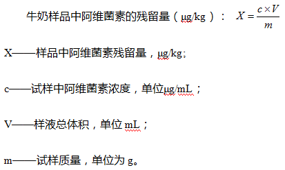 取試樣及不添加樣品的空白溶液,按外標法,以峰面積計算,根據回歸方程,得出試樣中阿維菌素含量。