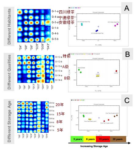 3)可以判斷茶葉的存儲時間,如普洱(圖8C)