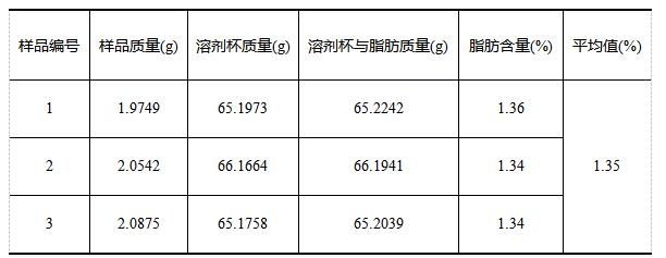 《GB 5009.6-2016食品安全國家標準 食品中脂肪的測定》中對于精密度規定:在重復性條件下獲得的兩次獨立測定結果的絕對差值不得超過算術平均值的10%。實驗各樣品三次獨立測定結果絕對差值均未超過算術平均值的10%,符合標準要求。