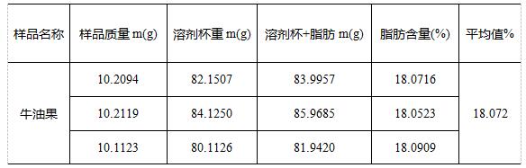 從以上數據可以看出牛油果抽提出的脂肪含量高達18.072%。