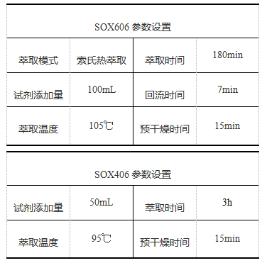 實驗中抽提溶劑可以根據實際情況選擇無水乙醚、石油醚,實驗中儀器溫度設置一般高于所用溶劑沸點10-20℃為宜。如選擇無水乙醚作為溶劑,應將樣品徹底干燥。如選擇石油醚作為溶劑,可允許樣品中存在微量水分。無水乙醚、石油醚均存在易燃易爆風險,且會對人體造成傷害,實驗過程中應注意保持良好通風,或將儀器放置于通風櫥中。