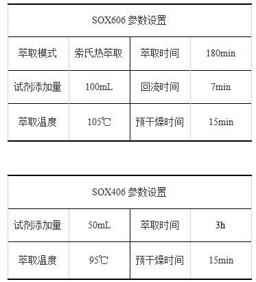 實驗中抽提溶劑可以根據實際情況選擇無水乙醚、石油醚,實驗中儀器溫度設置一般高于所用溶劑沸點10-20℃為宜。如選擇無水乙醚作為溶劑,應將樣品徹底干燥。如選擇石油醚作為溶劑,可允許樣品中存在微量水分。樣品需進行充分研碎或粉碎。顆粒尺寸越小,混合越均勻,樣品中脂肪越容易被萃取出來,從而可縮短萃取時間,提高工作效率。無水乙醚、石油醚均存在易燃易爆風險,且會對人體造成傷害,實驗過程中應注意保持良好通風,或將儀器放置于通風櫥中。