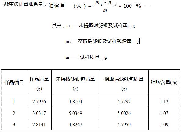 稱取樣品稱量樣品約3g(精確至0.0001g,記錄為m),用濾紙將其包好,放入以100℃烘箱內烘干1h,冷卻至室溫,精確稱量濾紙包重量,并記錄為m1。