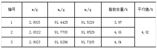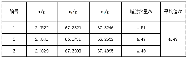《GB 5009.6-2016食品安全國家標準 食品中脂肪的測定》中對于精密度規定:在重復性條件下獲得的兩次獨立測定結果的絕對差值不得超過算術平均值的10%。實驗各樣品三次獨立測定結果絕對差值均未超過算術平均值的10%,符合標準要求。
