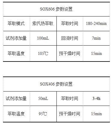 實驗中抽提溶劑可以根據實際情況選擇正己烷或石油醚,實驗中儀器萃取溫度設置一般高于所用溶劑沸點10-20℃為宜。實驗過程中應注意保持良好通風,或將儀器放置于通風櫥中。樣品需進行充分絞碎,游離脂肪容易被萃取出來,從而可縮短萃取時間,提高工作效率。