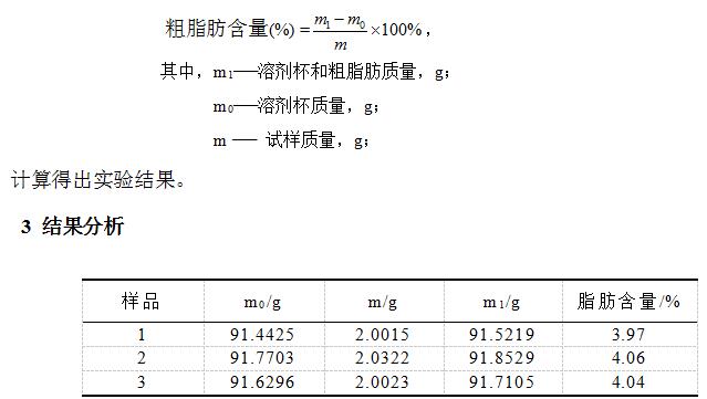 燕麥營養豐富,其中蛋白質、油脂、可溶性膳食纖維等的含量在谷物中居于前列。市面上的燕麥片有燕麥軋制而成。其具有降血脂、降血糖、高飽腹感的效果,而被廣大消費者所喜愛。其中脂肪含量測定原理為:將粉碎、分散且干燥的試樣用有機溶劑回流提取,使試樣中的脂肪被溶劑抽提出來,回收溶劑后所得到的殘留物,即粗脂肪。