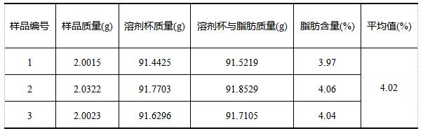 《GB 5009.6-2016食品安全國家標準 食品中脂肪的測定》中對于精密度規定:在重復性條件下獲得的兩次獨立測定結果的絕對差值不得超過算術平均值的10%。實驗各樣品三次獨立測定結果絕對差值均未超過算術平均值的10%,符合標準要求。