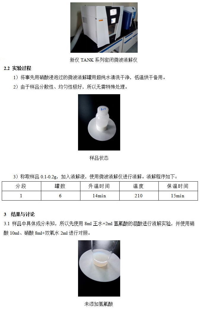 3.2 使用逆王水加氫氟酸的混酸進行消解實驗。