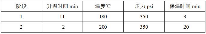 鐵礦石的消解條件:鐵礦粉取樣量為0.2g。加入10ml的硫磷混酸(硫酸:磷酸=2:8)與2mL100g/L的SnCl2.使用TANK微波消解儀進行消解,微波消解條件如下: