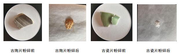 將古陶片、古瓷片用研缽粉碎,顆粒越小,越有利于消解。