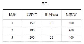 將古陶片樣品碾碎,稱取0.1g(精確至0.1mg),加入3mL鹽酸、3mL硝酸和4mL氫氟酸,室溫靜置15min左右,組裝消解罐,按照(表二)設置參數進行消解實驗: