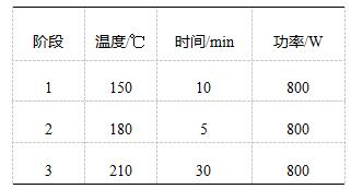 分別加入6mL濃硝酸、2mL濃鹽酸和2mL的氫氟酸,同時做試劑空白,室溫靜置一段時間,待其反應完全后,則組裝消解罐,按照如下設置參數進行消解: