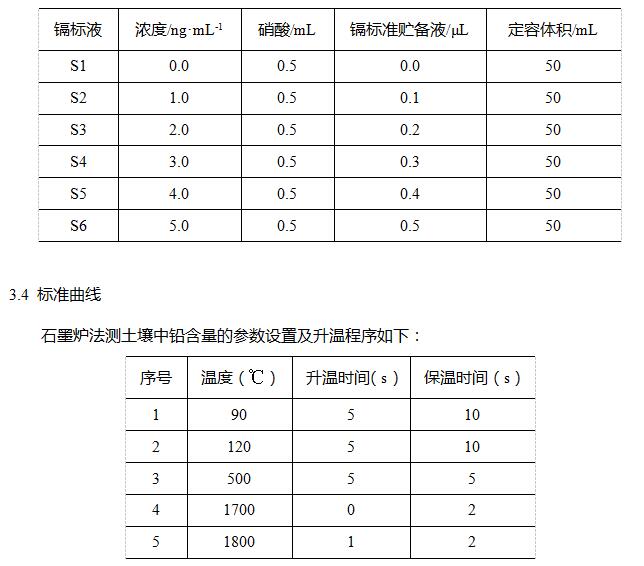 石墨爐法測土壤中鎘含量的參數設置及升溫程序如下: