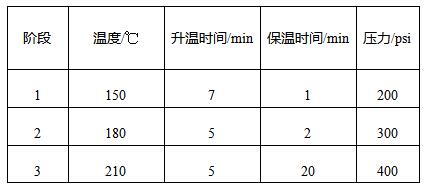 每個消解罐內加入6mL硝酸、2mL鹽酸和2mL氫氟酸,組裝消解罐,按照如下程序設定進行微波消解: