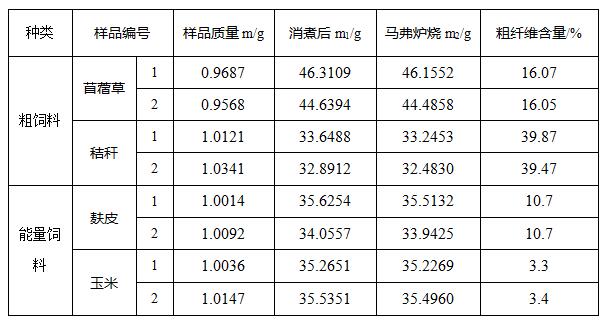 飼料按國標方法分類,可分為粗飼料、青綠飼料、青貯飼料、能量飼料、蛋白質補充飼料、礦物質飼料、維生素飼料、添加劑。其中粗飼料指干物質中粗纖維的含量在18%以上的一類飼料,主要包括干草類、秸稈類等;青綠飼料指自然水分含量在60%以上的一類飼料;能量飼料指干物質中粗纖維的含量在18%以下,粗蛋白的含量在20%以下的一類飼料主要有谷實類、糠麩類等。本方案主要以粗飼料和能量飼料兩種類樣品進行粗纖維檢測。