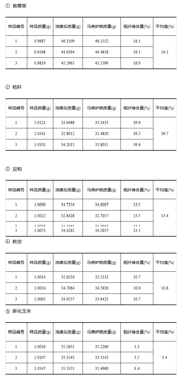 纖維是反芻動物的一種必須營養素。因此,動物適量攝入粗纖維是對身體有利的。其益處有:維持瘤胃的正常功能和動物的健康;為動物提供大量的能源。粗纖維含量可通過纖維測定儀來測定,經固定量的酸和堿,在一定條件下消煮樣品,再經醚、丙酮除去醚溶物,經高溫灼燒扣除礦物質的量,所余量即為粗纖維。