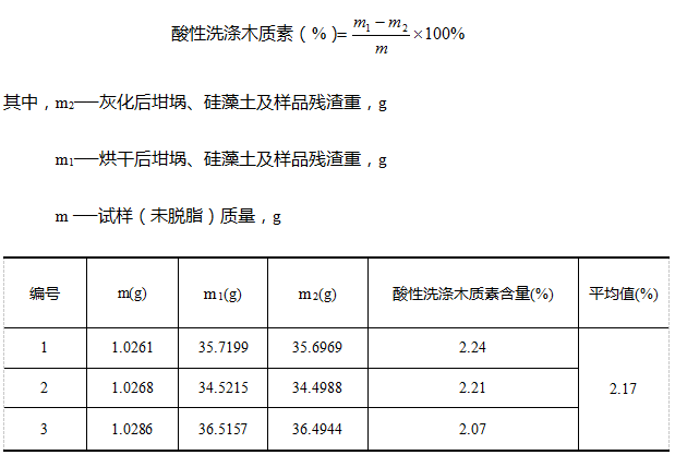 《GB/T 20805-2006 飼料中酸性洗滌木質素(ADL)的測定》中對于重復性規定:每個試樣做兩個平行測定,取平均值為分析結果,方法允許相對偏差≦10%。實驗各樣品三次獨立測定結果相對偏差符合標準要求。