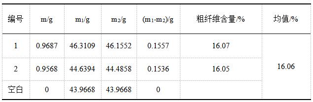 苜蓿草在硫酸作用下,其中糖、淀粉、果膠質和半纖維素經水解出去后,再用堿處理,除去蛋白質及脂肪酸,剩余的殘渣為粗纖維。如其中含有不溶于酸堿的雜質,可灰化后除去。經減重法得到粗纖維含量結果。