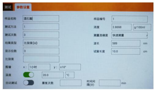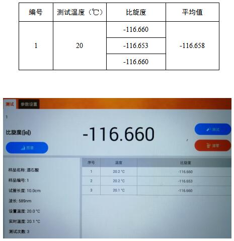 儀器預熱,設置合適的參數用,在20℃時,用空白溶液校正后,測試樣品的比旋光度,重復測定3次并記錄數據。