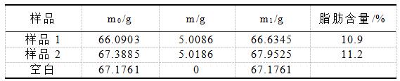 其中,m1──溶劑杯和粗脂肪質量,g;