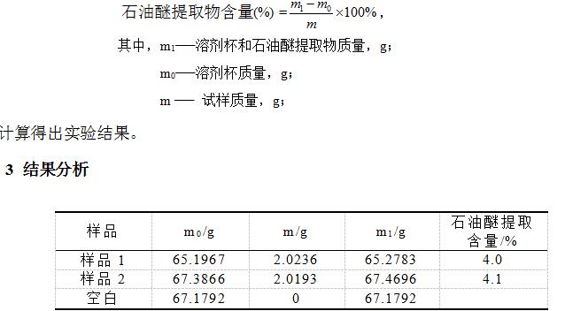 4.計算結果:抽提完成后,烘干溶劑杯至恒重,記為m1。