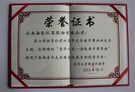 “海能赤子獎學金”是海能儀器出資,與清華大學共同設立,意在通過獎學金的形式,獎勵品學兼優,熱愛民族儀器事業,胸懷“赤子之心”,立志為繁榮國產科學儀器事業而貢獻力量的莘莘學子。