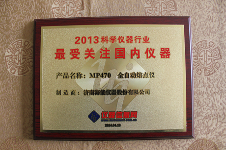 4月18日晚,中國科學儀器發展年會“2013年度最受關注儀器”正式公布,評選出國內外12個大類中最受用戶關注的儀器。海能儀器研發生產的MP470全自動視頻熔點儀位列其中。