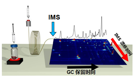 1) 縱坐標為氣相保留時間,橫坐標為離子遷移時間;